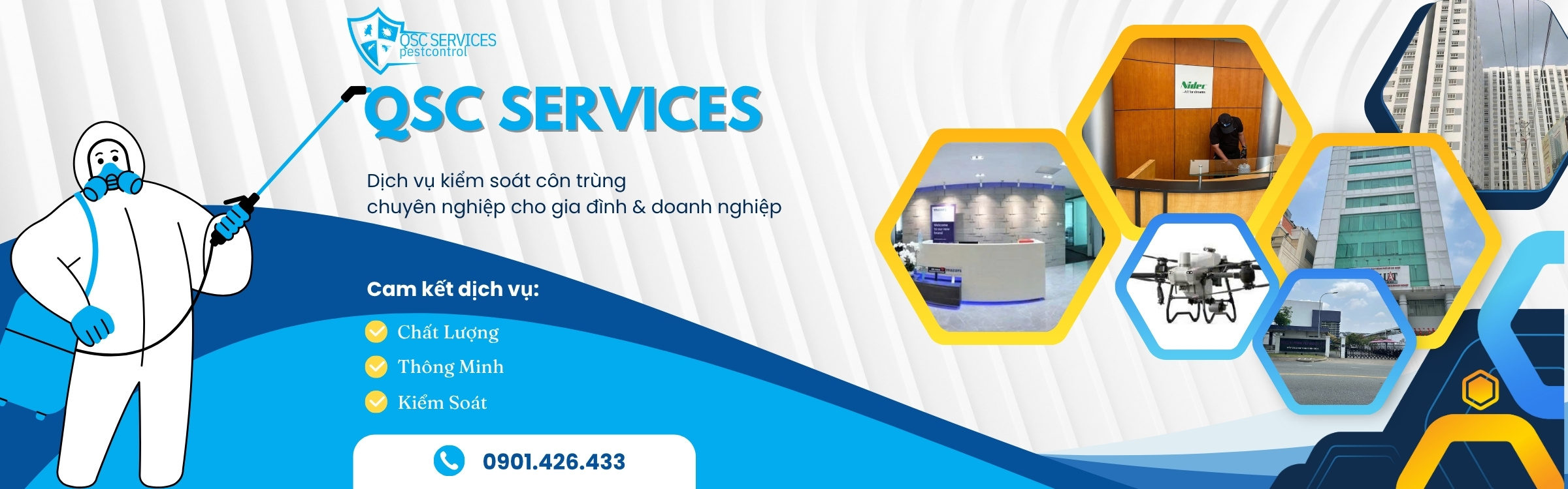 QSC Services sở hữu đội ngũ kỹ thuật viên được đào tạo bài bản, có kinh nghiệm thực tế trong xử lý đa dạng các loại côn trùng và động vật gây hại như muỗi, gián, chuột, mối… Đơn vị luôn cập nhật phương pháp hiện đại.